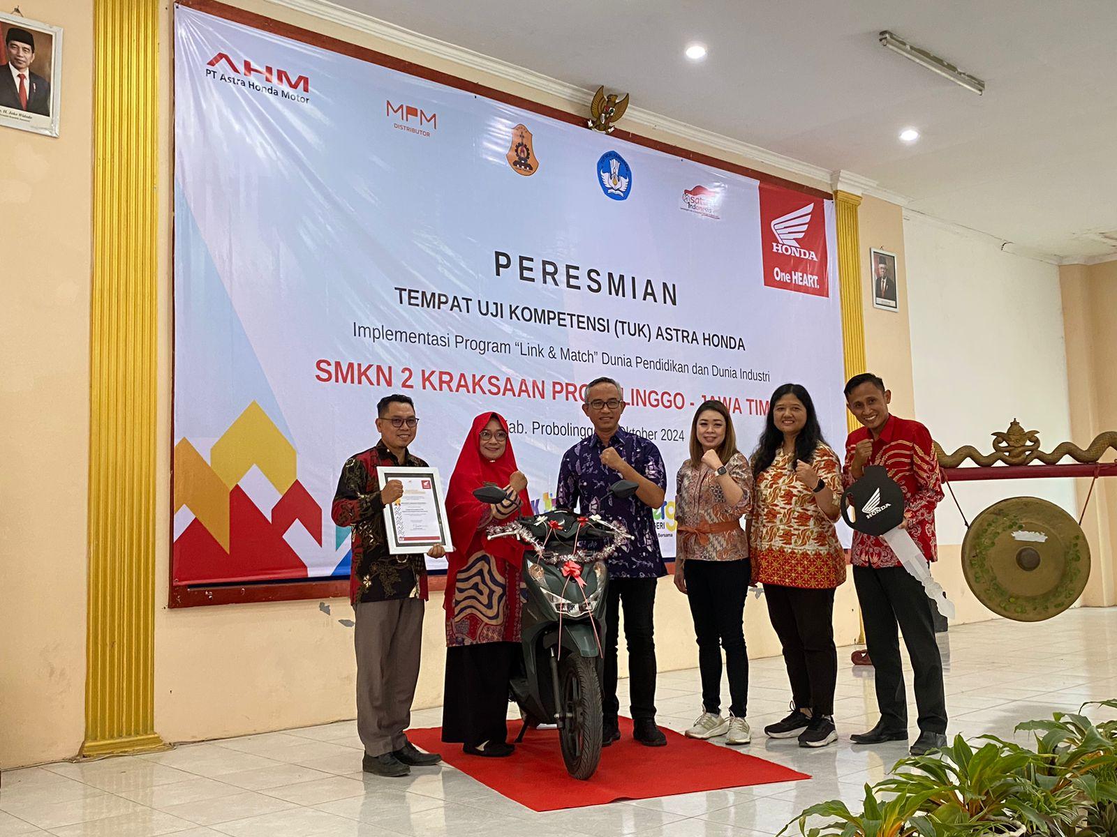 Komitmen untuk mendukung pengembangan keterampilan generasi muda terutama di bidang otomotif, PT. Mitra Pinasthika Mulia (MPM Honda Jatim) distributor sepeda motor Honda wilayah jatim & NTT meresmikan Tempat Uji Kompetensi (TUK) Astra Honda baru yang dirancang khusus untuk memberikan kesempatan bagi siswa sekolah menengah kejuruan (SMK) untuk mengasah keterampilan mereka dalam bidang otomotif yaitu SMKN 1 Jatirejo Mojokerto dan SMKN 2 Kraksaan Probolinggo.