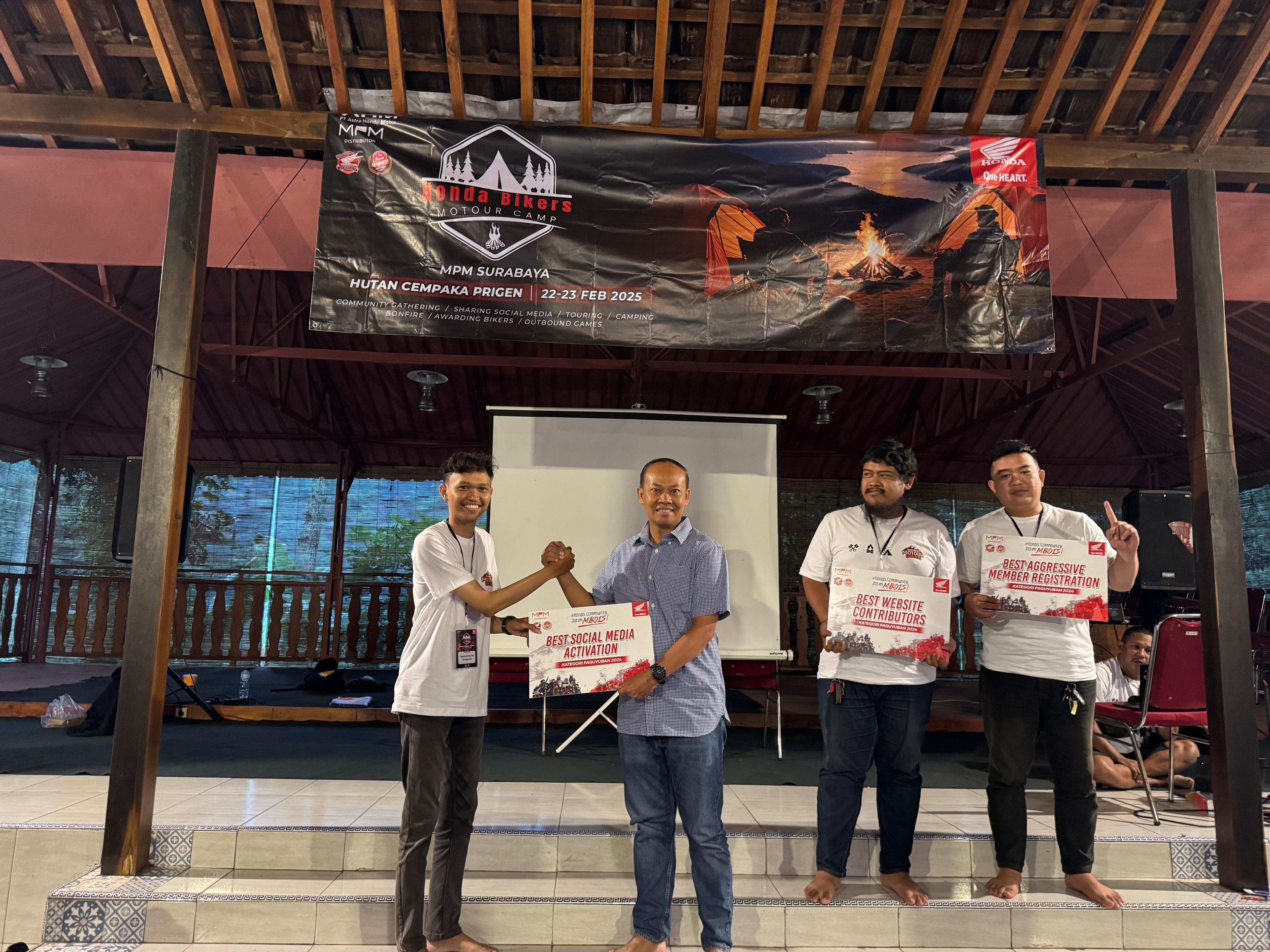 Kegiatan Honda Bikers Motour Camp 2025 yang diadakan oleh MPM Honda Jatim pada pada 22-23 Februari 2025 di Hutan Cempaka, Prigen, Pasuruan, selain sebagai ajang silaturahmi dan sarasehan antar biker juga memberikan penghargaan kepada beberapa klub, pengda maupun paguyuban yang berprestasi baik dalam kegiatan maupun sosial media.
