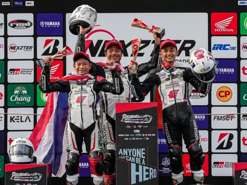 Jakarta - Pebalap binaan PT Astra Honda Motor (AHM) cetak prestasi membanggakan di dunia balap Internasional pada ajang Honda Thailand Talent Cup (TTC). Bintang Pranata Sukma, tampil impresif dengan meraih podium perdananya pada balapan pertama ajang TTC 2025, di Chang International Circuit, Buriram, Thailand.