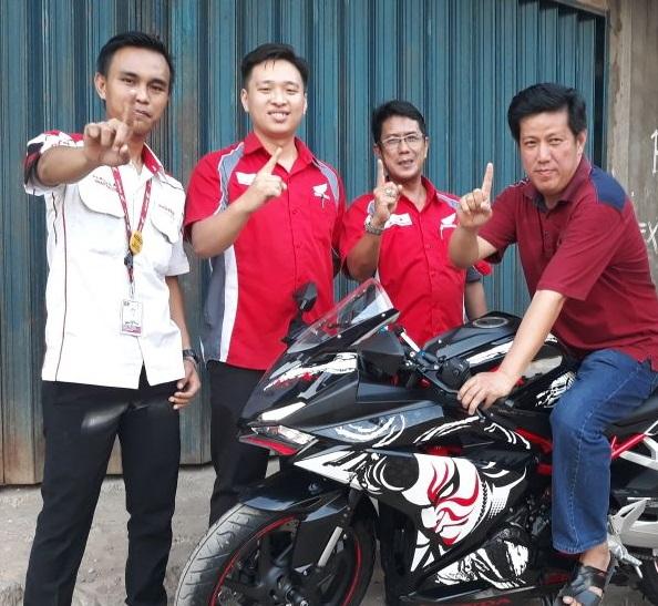 JAMBI - Jajaran Managemen PT Sinar Sentosa Primatama (Sinsen) turun langsung mengantarkan unit motor kepada konsumen beruntung yang telah membeli motor All New Honda CBR250RR mengusung tema the Art of Kabuki yang menjadi motor Honda paling banyak dipesan konsumen dalam ajang Gaikindo Indonesia International Auto Show (GIIAS) 2017.