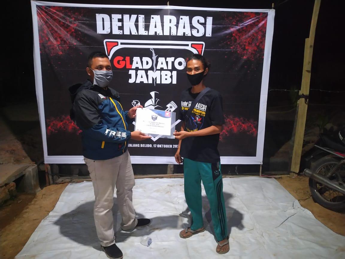GLADIATOR sendiri merupakan sebuah komunitas yang beranggotakan beberapa orang dengan pecinta sepeda motor Honda yakni ada Willy selaku ketua, lalu ada Heru, Deni, Aryandi, dan beberapa orang yang lainnya. Deklarasi tersebut sukses dibawa oleh host yang merupakan anggota dari GLADIATOR yakni Deni Setiawan dengan mendatangkan puluhan bikers untuk bisa hadir di lokasi acara di Talang Belido. Walaupun dengan jarak yang cukup jauh dari perkotaan namun acara tersebut sukses dan penuh khidmat dilaksanakan. Hal ini nampak dari sususan acara seperti menyayikan lagu Indonesia Raya, sambutan dari ketua pengurus serta ramah tamah dan games yang seru dengan didukung oleh PT. Sinar Sentosa Primatama selaku main dealer di wilayah Provinsi Jambi. PIC Community Sinsen, Dilan mengatakan “ Saya ucapkan selamat datang untuk GLADIATOR di keluarga besar komunitas sepeda motor Honda yang mana sudah mendeklarasikan diri pada malam ini dan sudah mengundang saya juga serta rekan-rekan dari paguyuban IMHJ. Semoga kedepan GLADIATOR bisa bekerjasama dengan baik bersama Sinsen dan IMHJ demi mencapai kejayaan dalam berkomunitas kedepannya”ujarnya. Acara ini juga menerapkan protokol kesehatan dengan mengadakan acara jauh dari kerumunan, menyediakan alat pencuci tangan serta mengundang beberapa perwakilan dari komunitas yang ada di Kota Jambi agar tidak menimbulkan kemaraian dalam pelaksanaan acara ini. GLADIATOR sendiri juga menerima anggota baru bagi teman-temang pecinta sepeda motor Honda yang ingin bergabung bersama GLADIATOR dapat menghubungi kontak Deni Setiawan (0813-8741-5054).