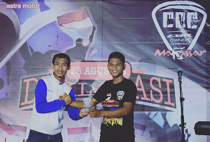 Para pecinta Honda CBR yang tergabung dalam CBR Owners Community Makassar (COC-Mks) resmi mendeklarasikan diri dihadapan para tamu undangan. Komunitas yang hadir seperti CCM, CCI Pare-Pare TOC-M, MTC, MPC, HSFCI, HBC, BOC, dan beberapa klub yang tergabung dalan keluarga besar Ikatan Motor Honda Makassar (IMHM) (28/8).