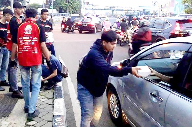 Kemudian untuk kedua dan ketiga juga membagikan takjil, lokasi kedua di area perempatan lampu merah Tol Timur Bekasi (10/6/2017), ketiga di area perempatan lampu merah Metropolitan Mall Kalimalang Bekasi (17/6/2017).